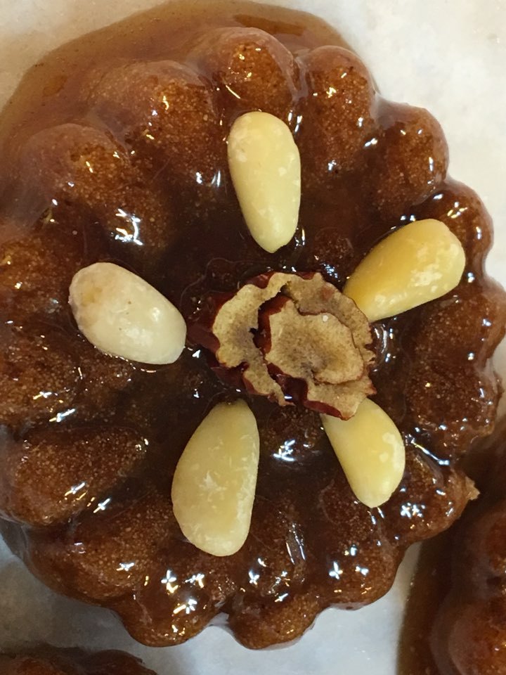 7. 건져낸 약과에 고명으로 대추를 씨빼낸 후 발려서 돌돌 말아주고 잣이나 호박씨를 꽂아준다.