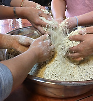 깨와 호박씨, 땅콩 등을 섞어주면서 반죽해준다.