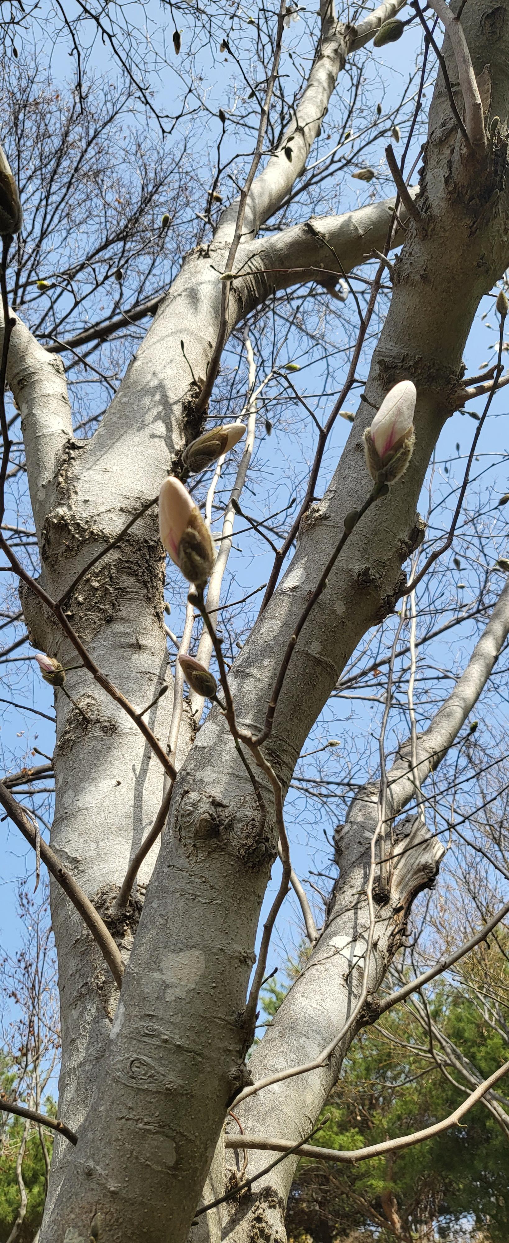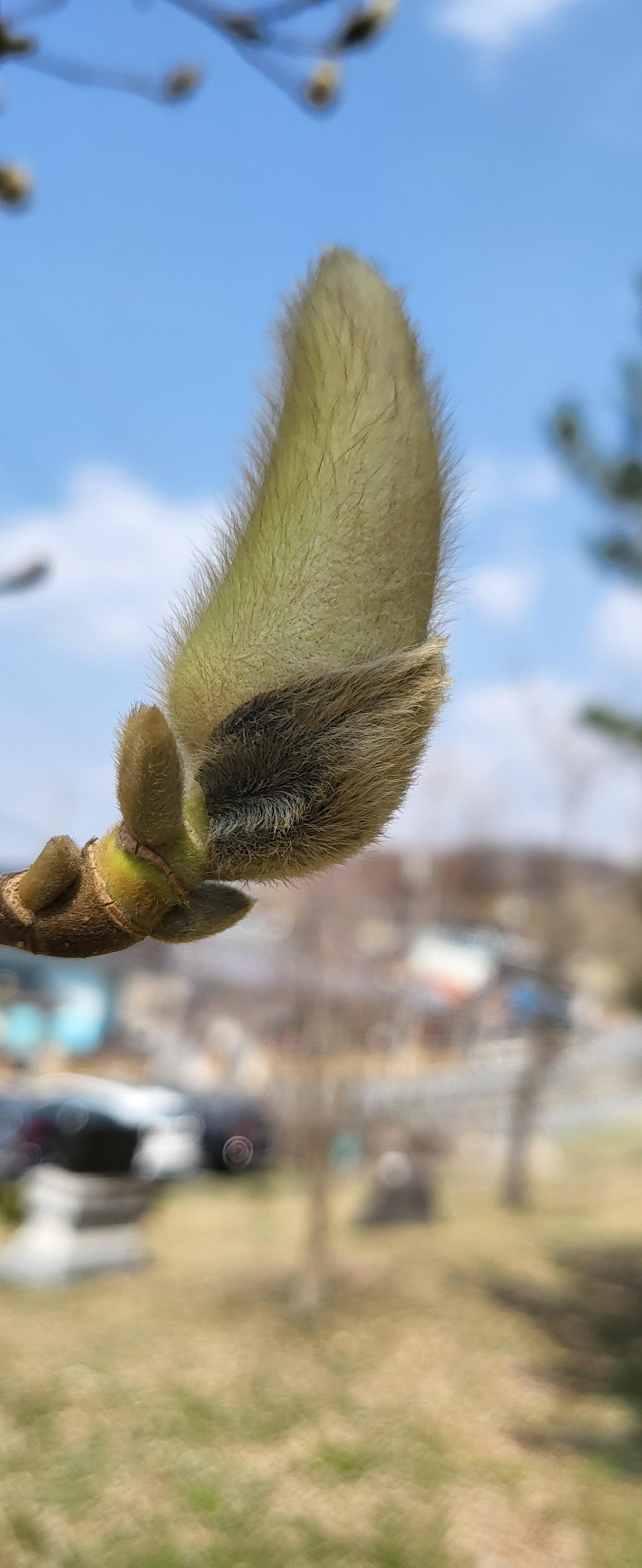 지난 가을부터 이미 꽃을 피울듯 엄지만한 꽃눈을 털옷으로 감싸고 겨울을 난 나무가 있다. 준비성이 빠른건지 추위에 약해 그런건지 모르지만, 흰색의 커다란 꽃봉우리가 조금씩 빼꼼 빼꼼 올라오기 시작하면 흰붓을 보는듯하다. 그 때가 지나면서 기온이 15~20도 정도로 오르면 어느순간 마침내 희고 고운 꽃잎이 확 벌어지면서 흰블라우스같은 자태가 하늘거린다. 붓모양의 꽃봉우리에서 일주일 사이에 백목련이 활짝 피어난다. 개화된 꽃의 크기는 내 주먹만하고 꽃잎은 6~9장으로 꽃잎 하나는 3~4cm 정도로 크다. 목련꽃의 안쪽세는 암술과 수술이 뿅뽕 솟아올라 립스틱처럼 짙은 색상을 띤다. 햇빛을 많이 받는 수간위쪽 남향에서부터 꽃이 피고 점차 아래로 내려오며 북쪽방향의 그늘진 곳까지 꽃이 피는데 일주일 정도의 시차가 걸린다. 나는 이맘때면 어디에 목련이 있는지부터 언제 꽃이 피기 시작하는지를 꼼꼼이 점검한다.
