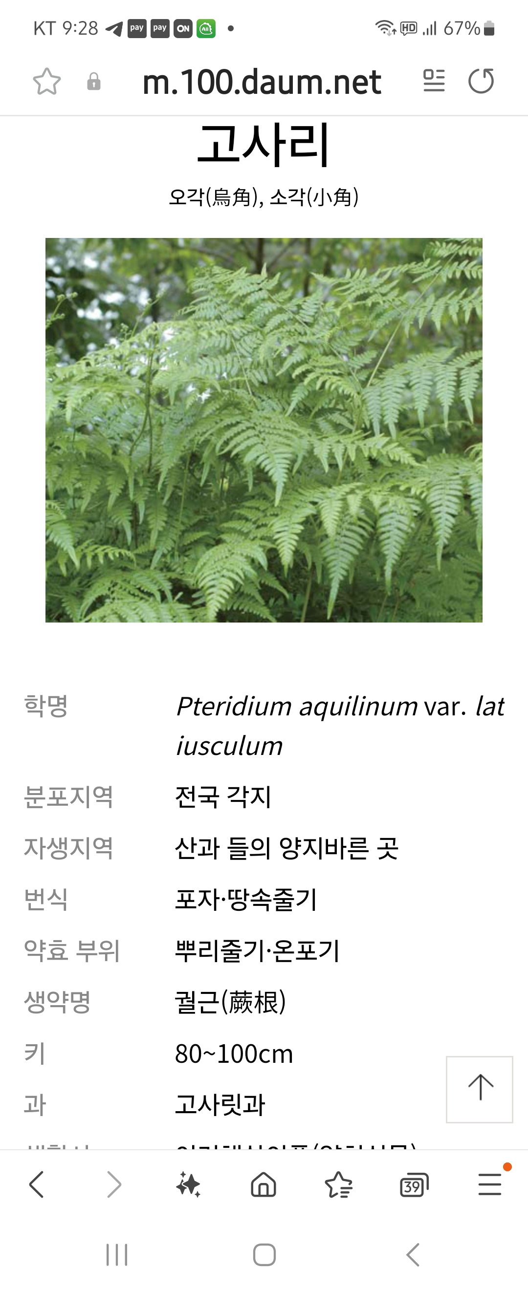 고사리를 검색하니아래 사진과 같은 설명이 있네요.